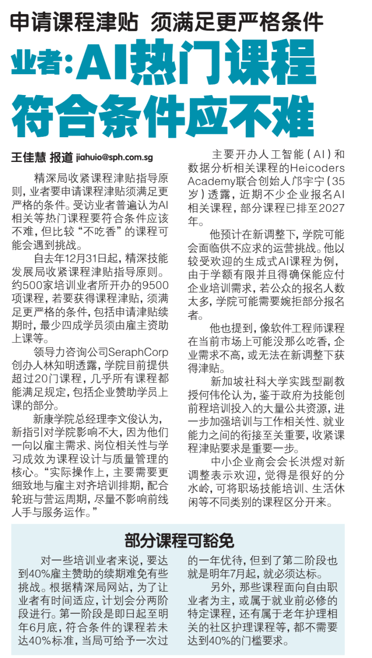 The Straits Times: Stricter SkillsFuture course funding guidelines for 9,500 courses across 500 training providers January 27, 2026 Read More